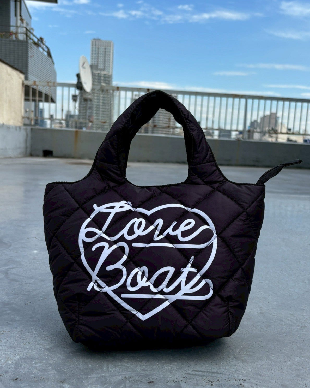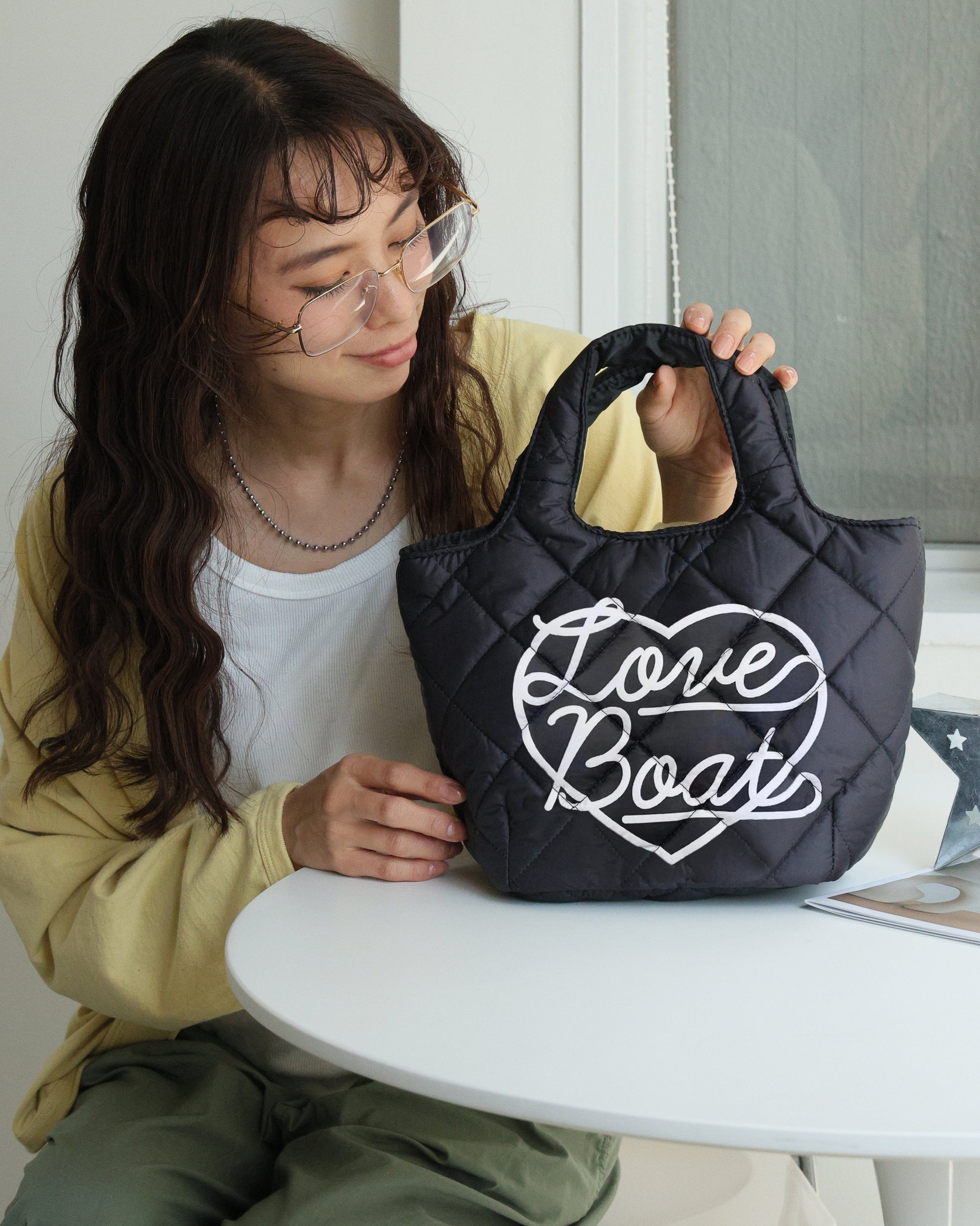 LOVEBOATのハートロゴが大きくプリントされたキルティングミニトート。