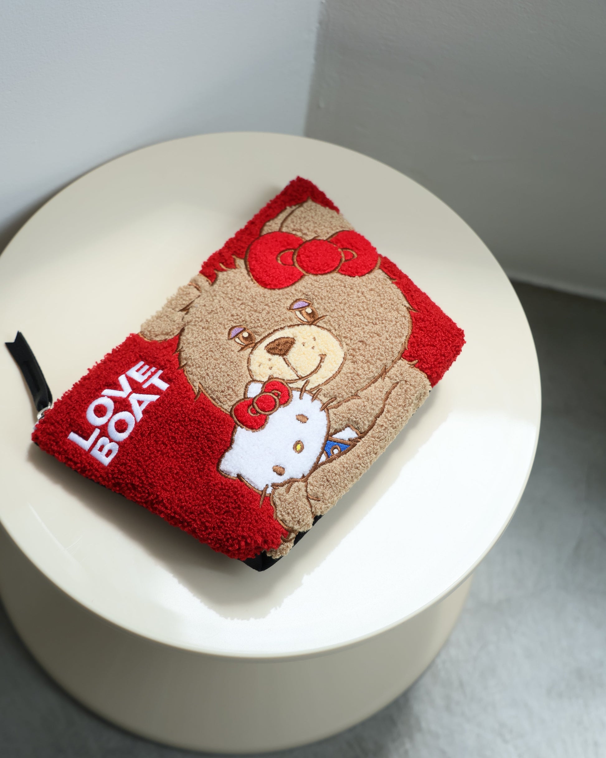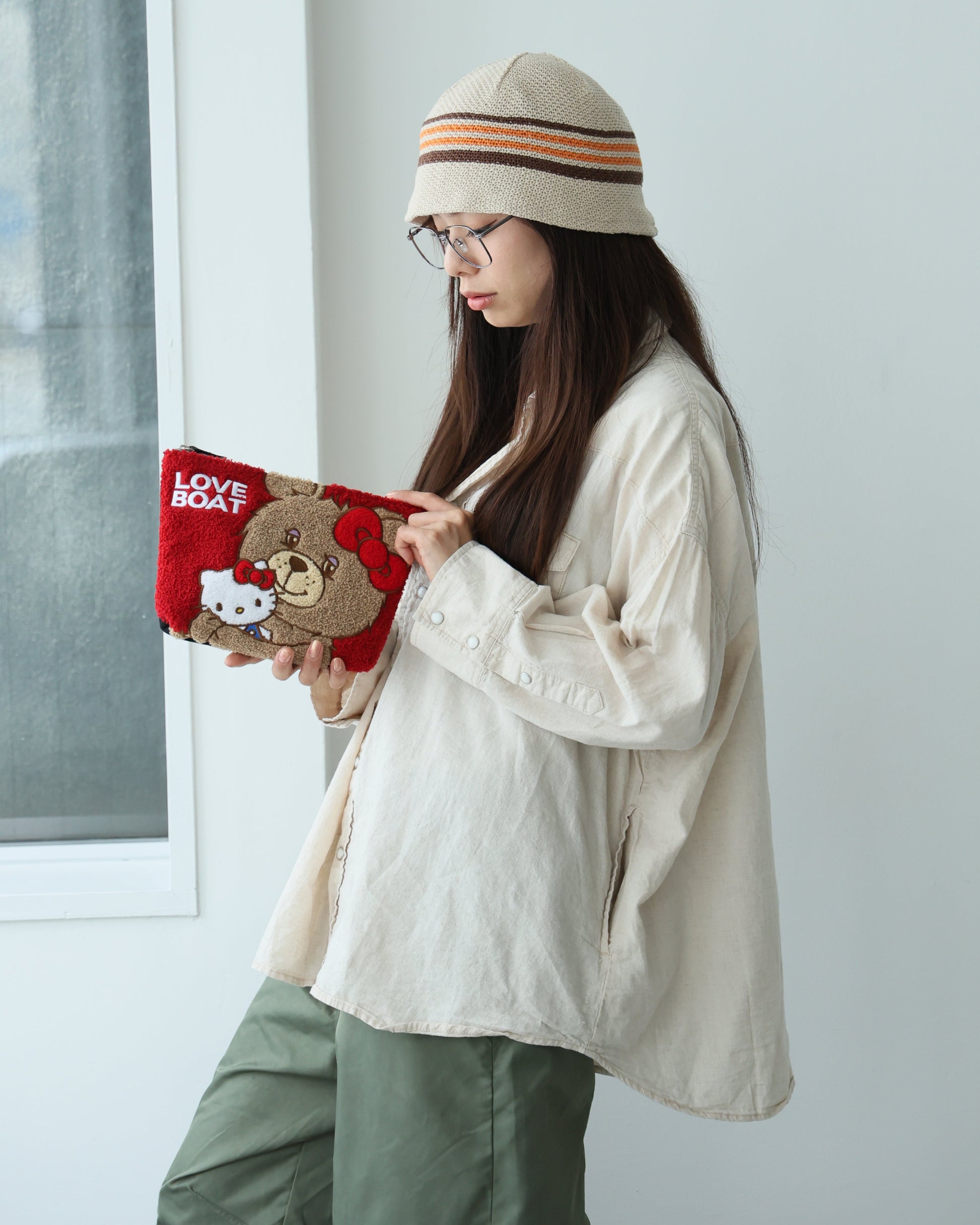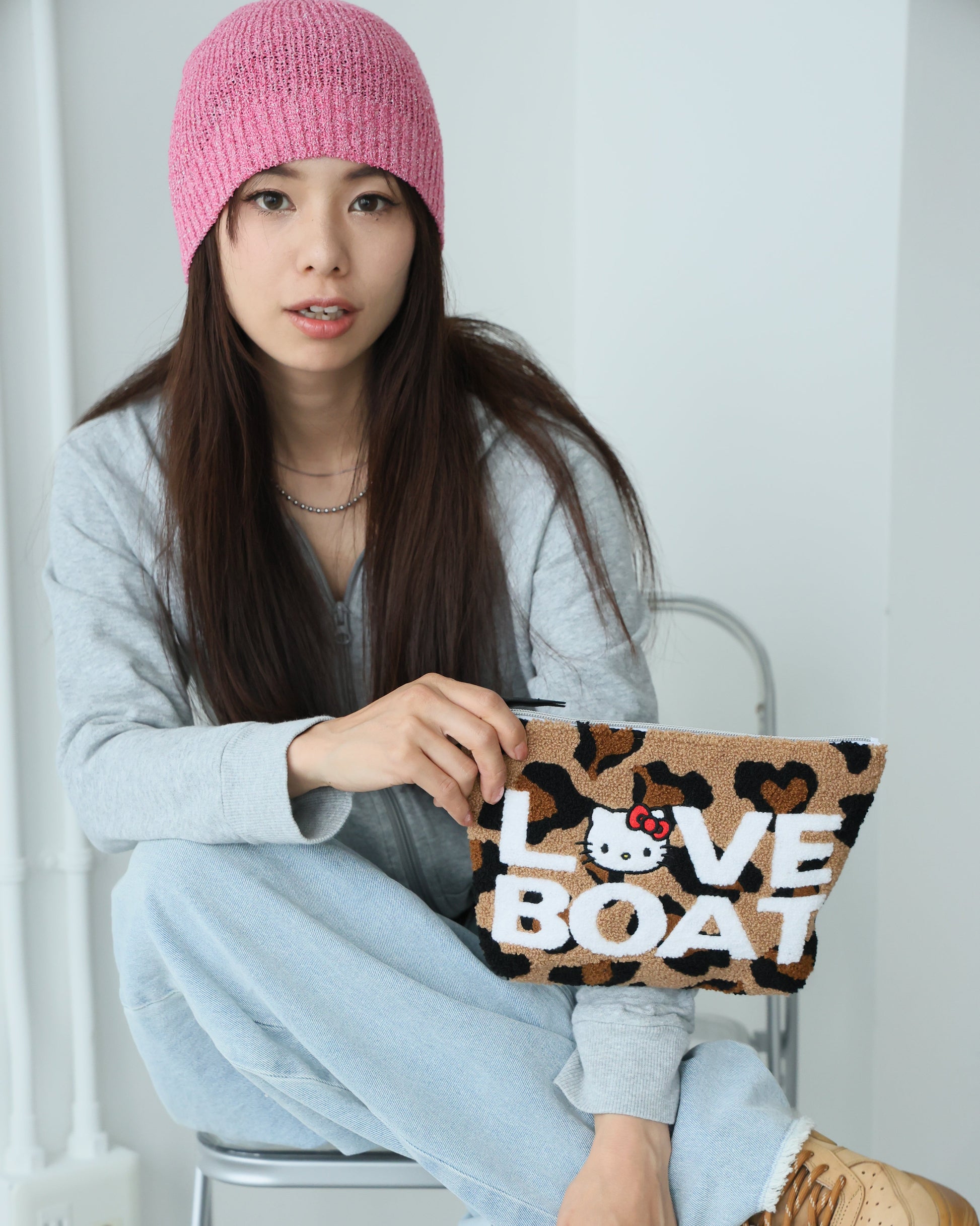 LOVEBOATとキティちゃんの刺繍が施されたさがらポーチ。
